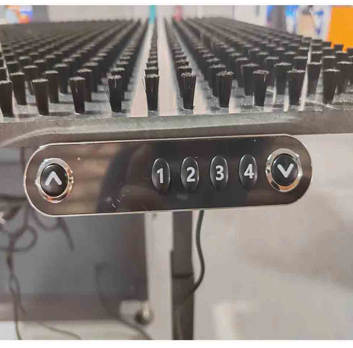 壓鉚機配套操作臺,適合大尺寸板材的壓鉚工作。升降臺升降高度69-115cm,臺面尺寸:長1200mm,寬700mm。4個高度可記憶設(shè)置。操作便捷,節(jié)省人工。臺面表面均勻分布高密度毛刷,避免板材表面移動過程中造成刮痕。